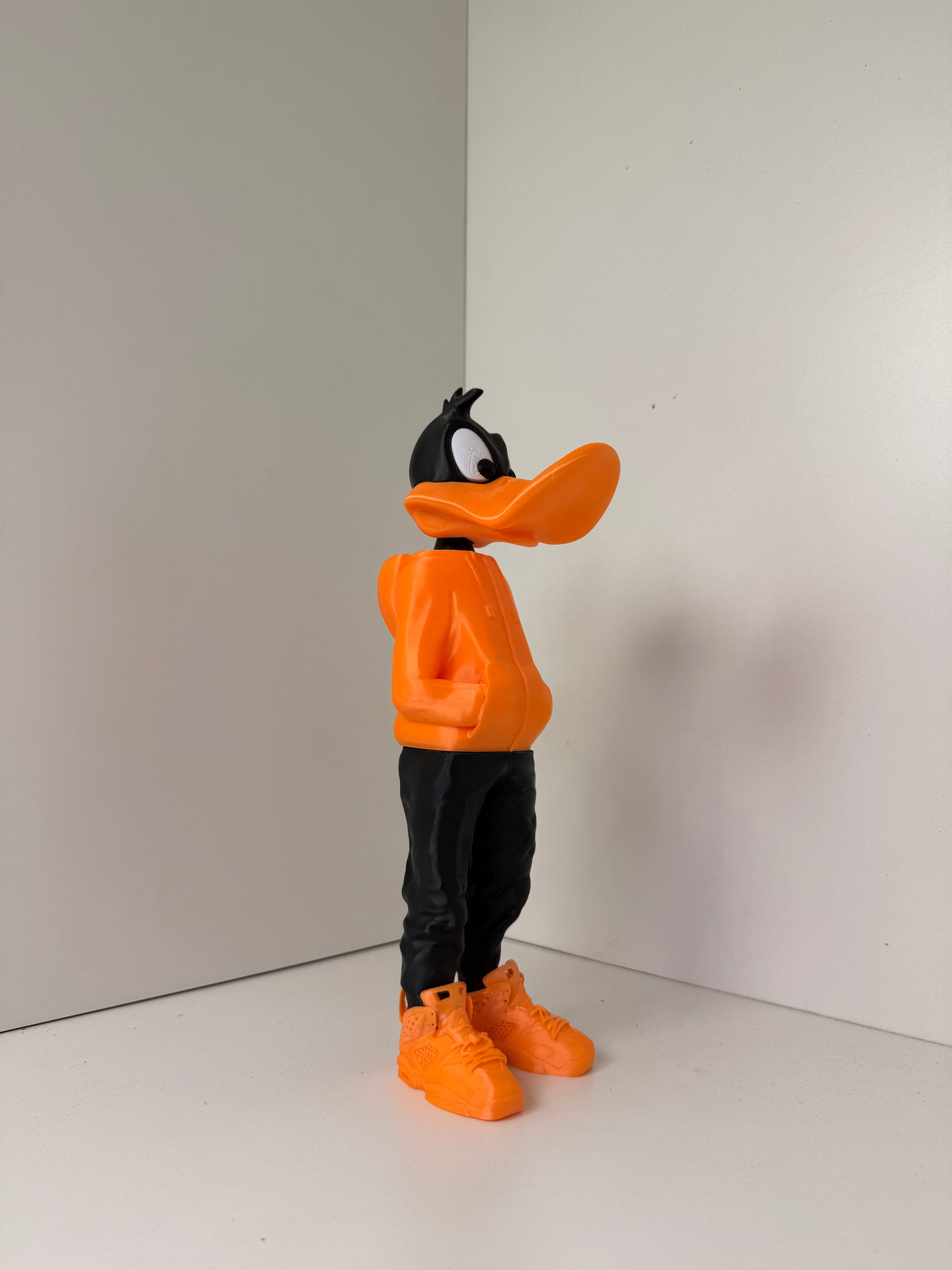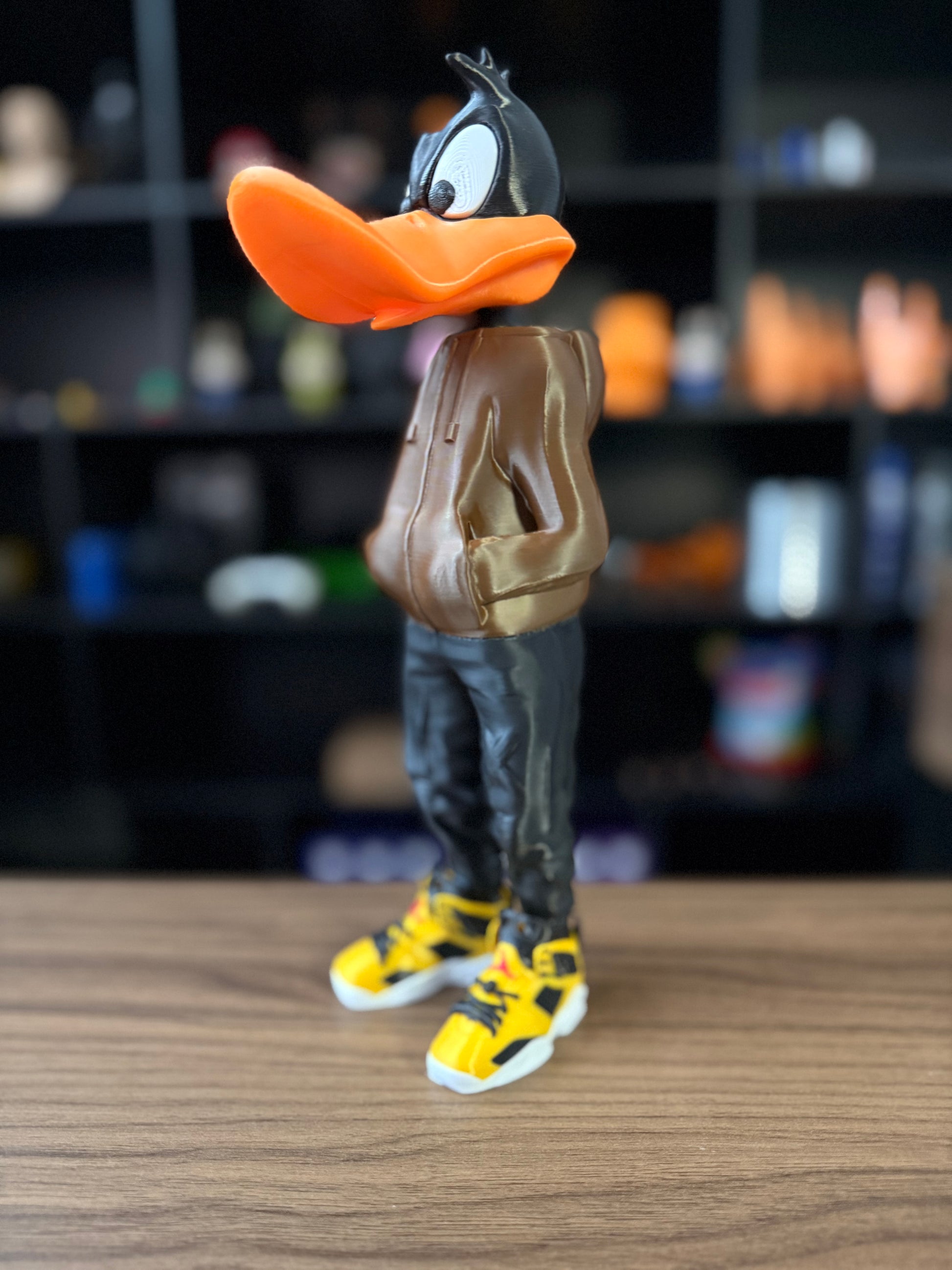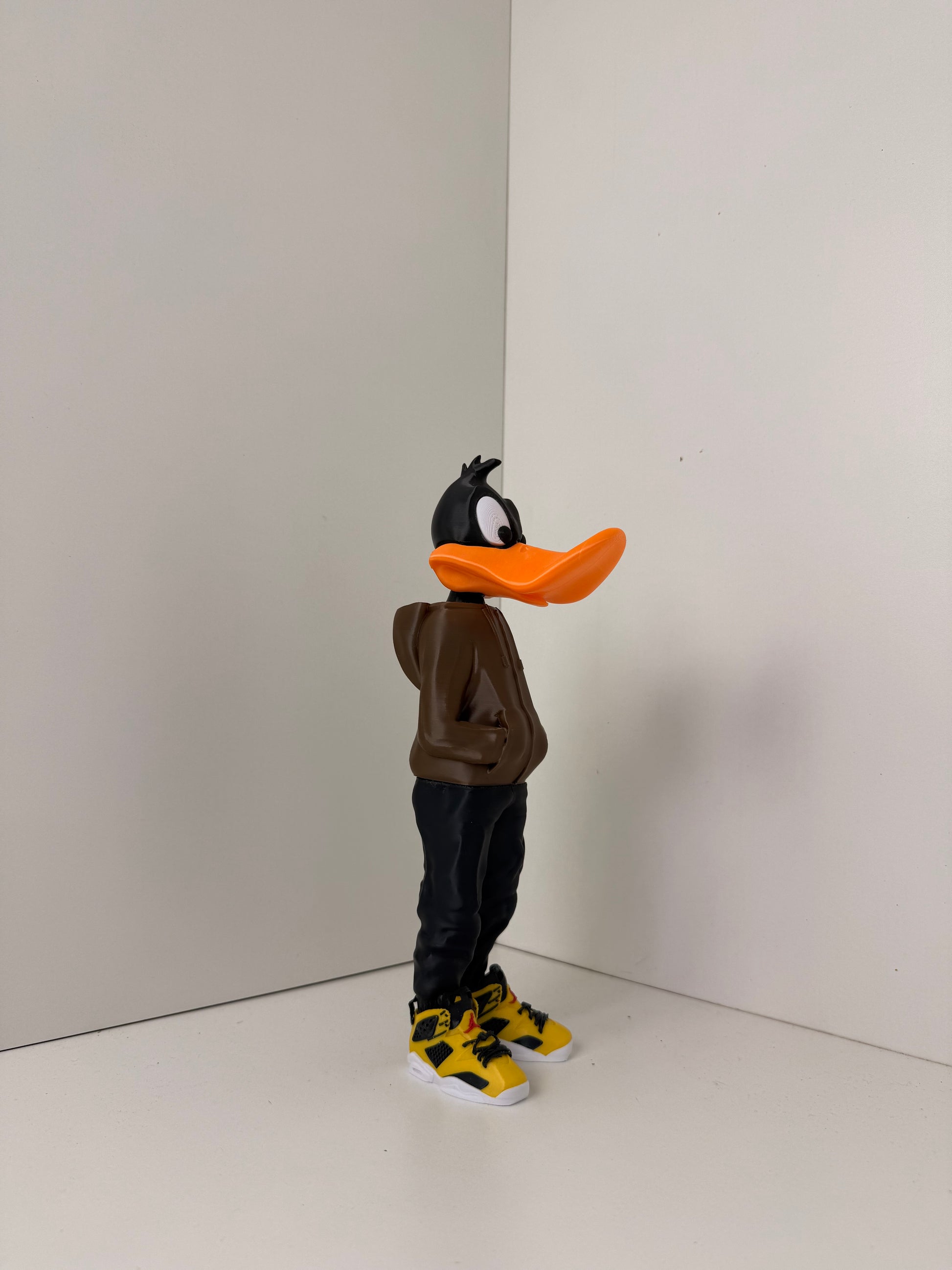 Escultura do Personagem Patolino do universo dos Looney Tunes, agora com um toque urbanizado.