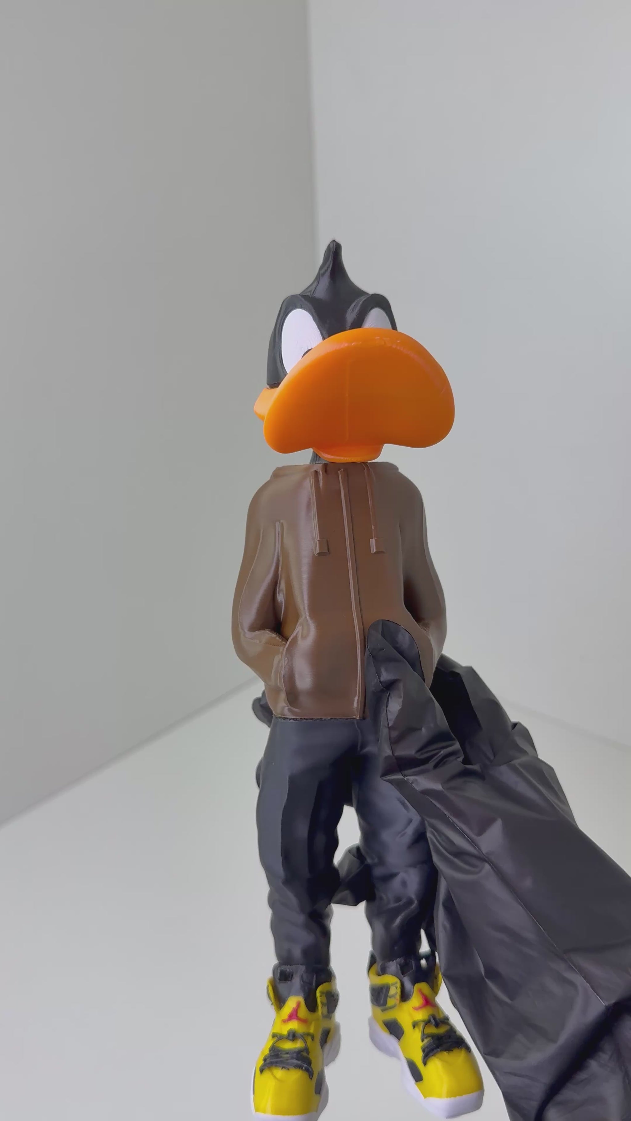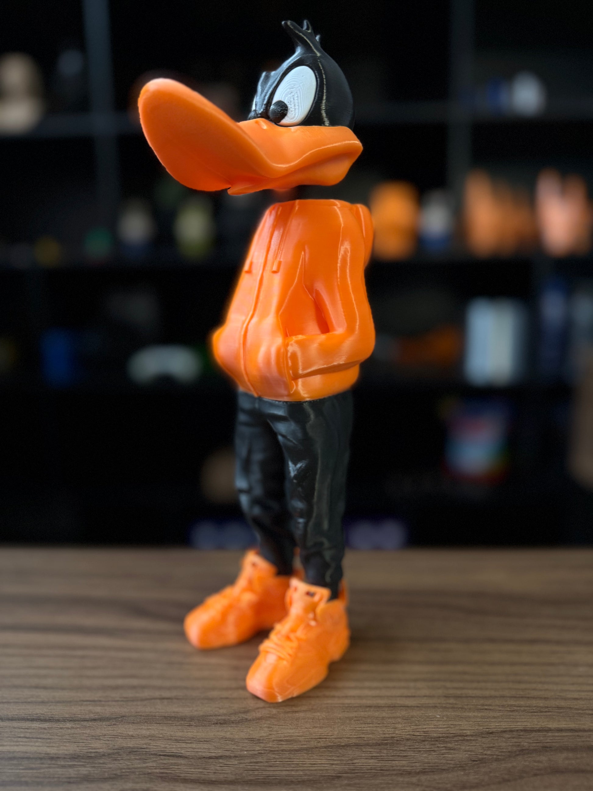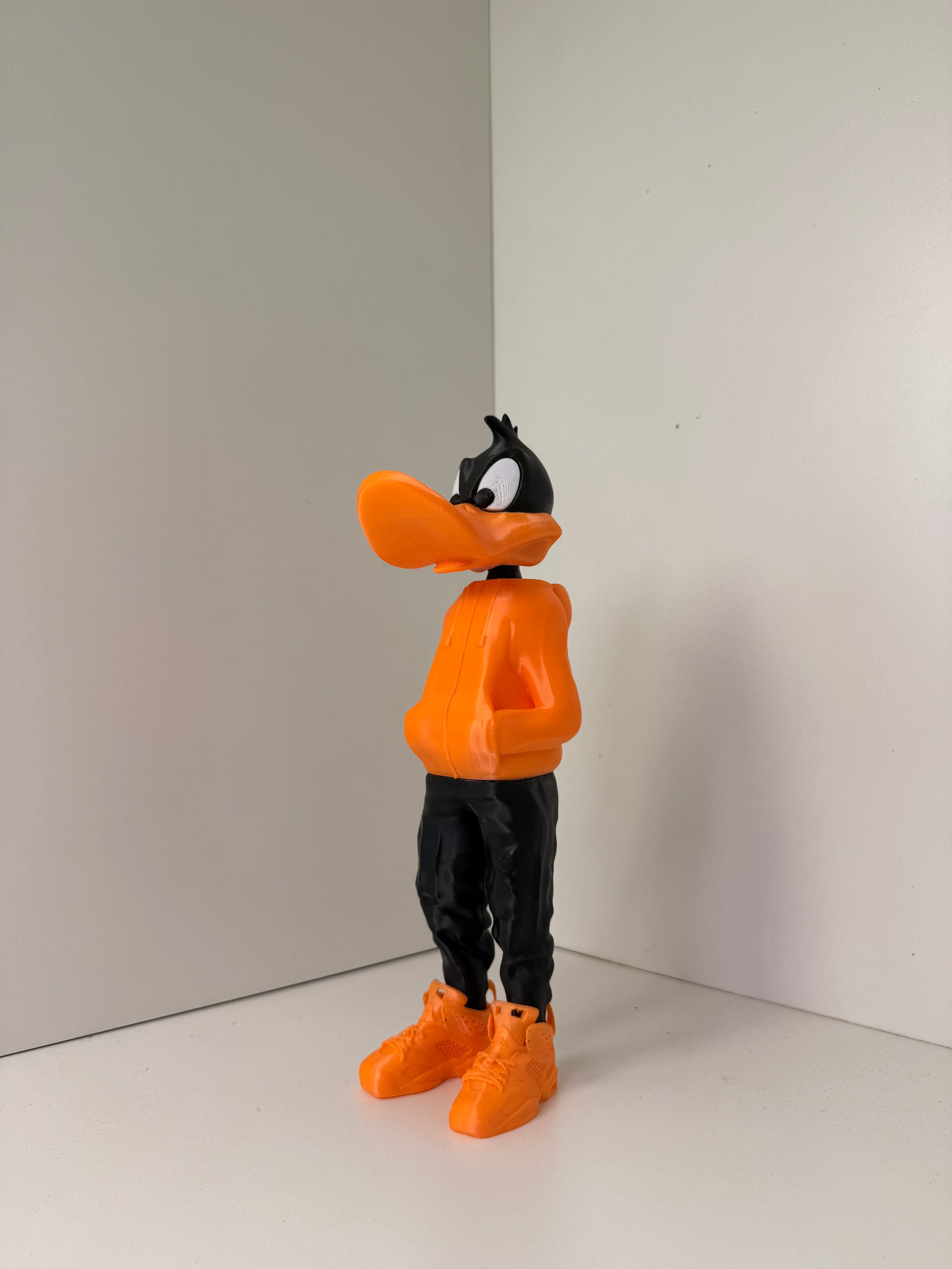 Escultura do Personagem Patolino do universo dos Looney Tunes, agora com um toque urbanizado.