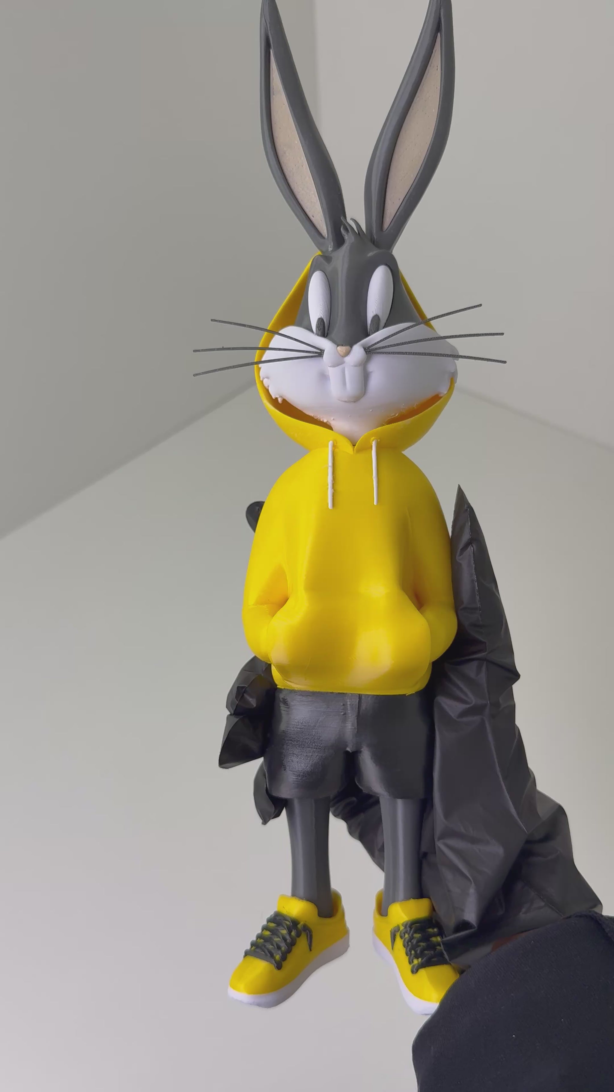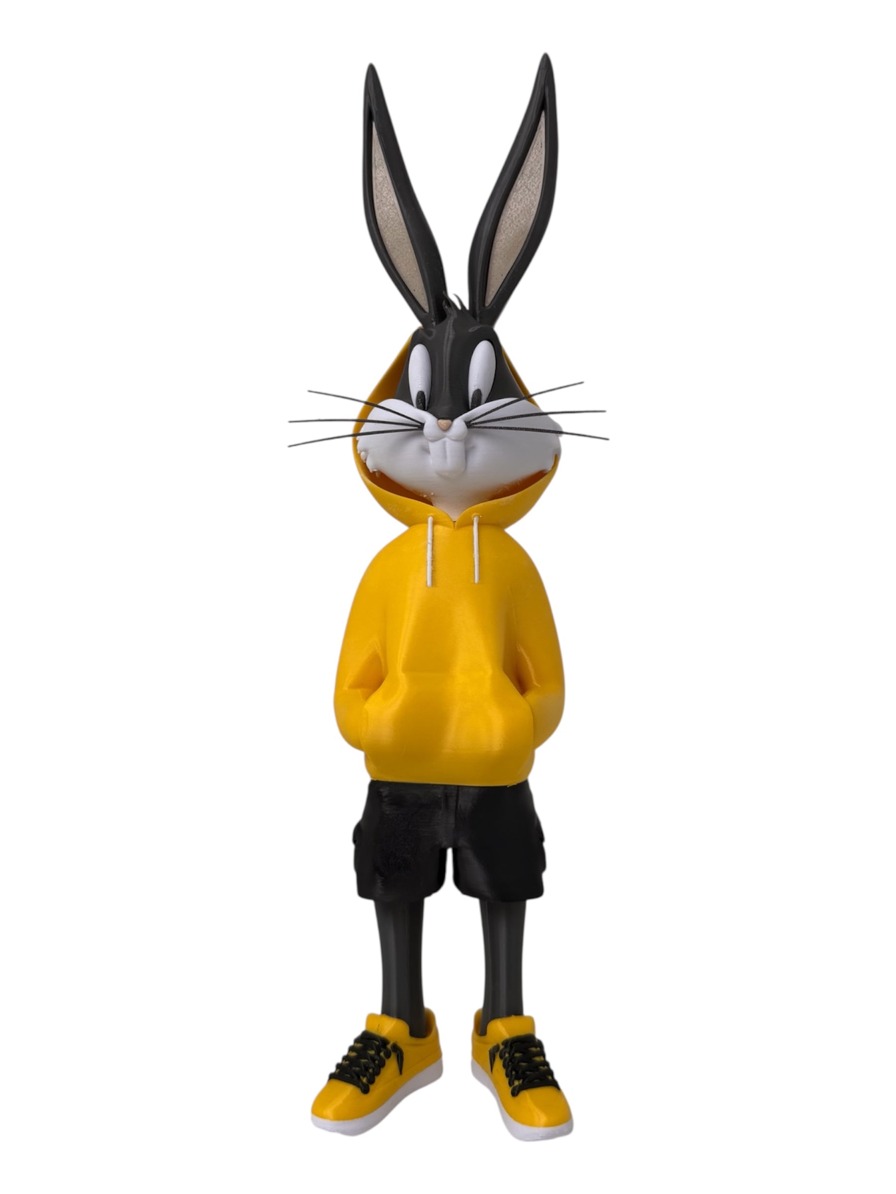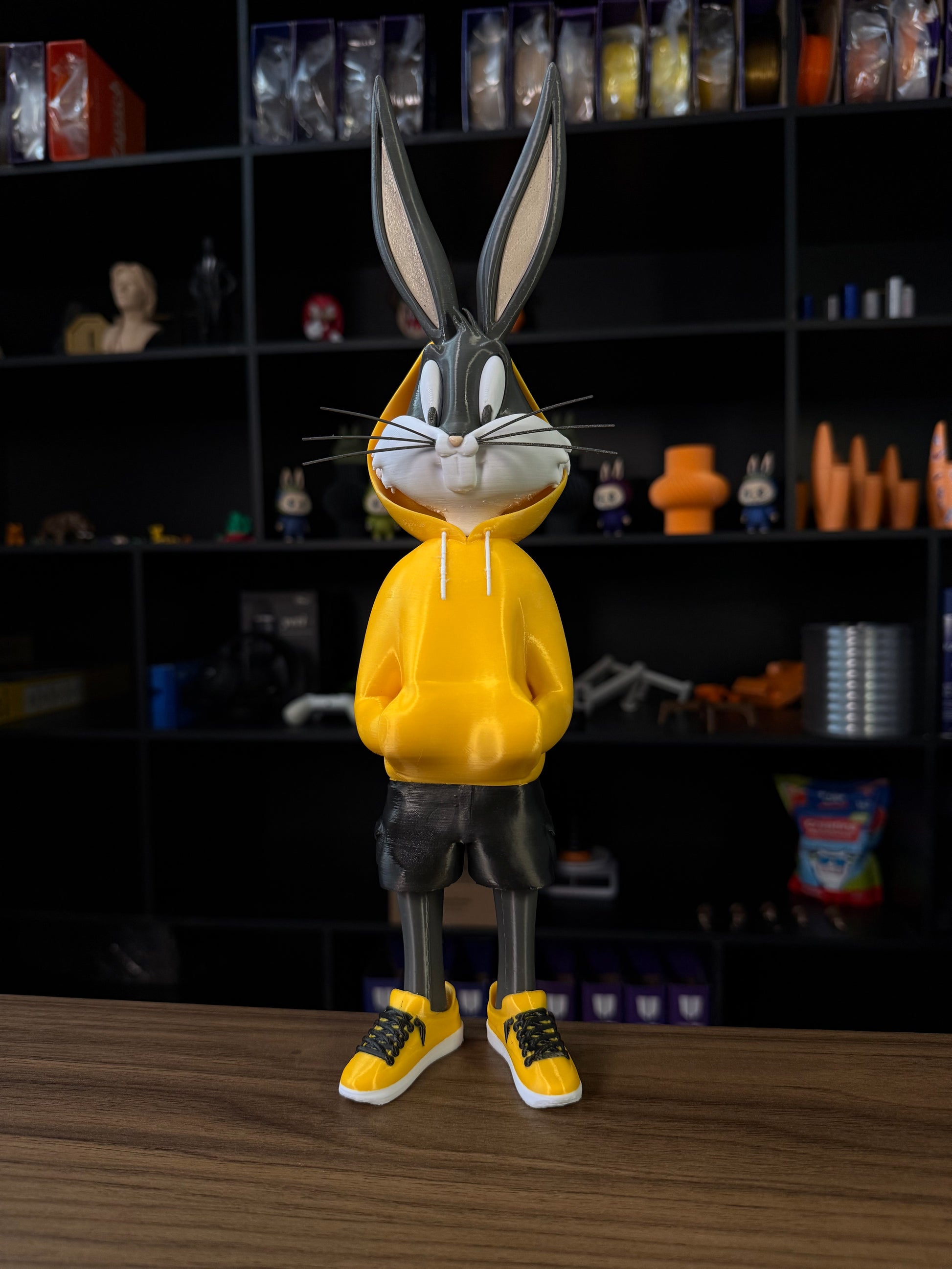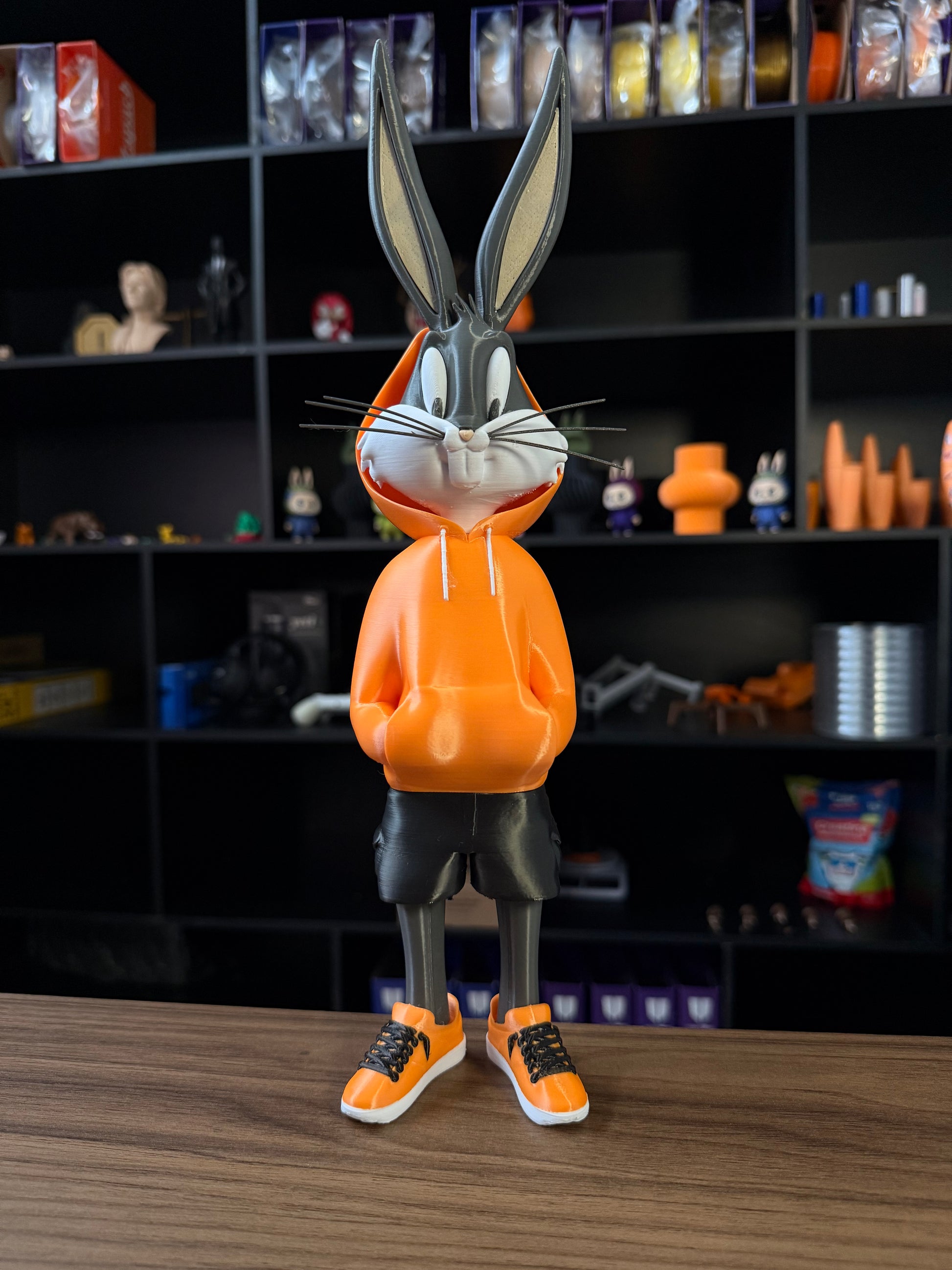 Escultura do Personagem Pernalonga do universo dos Looney Tunes, agora com um toque urbanizado.